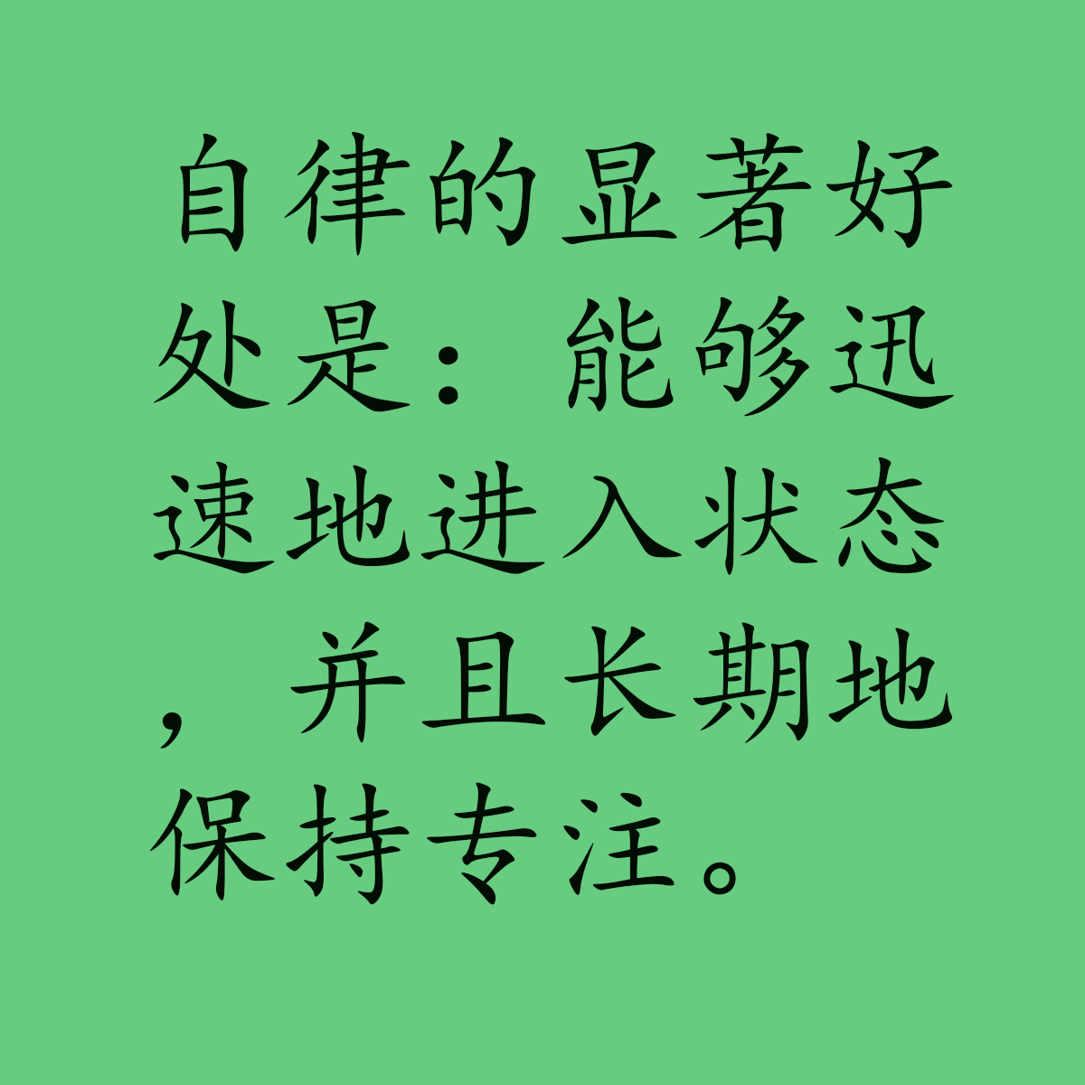 自律的显著好处是:能够迅速地进入状态,并且长期地保持专注。