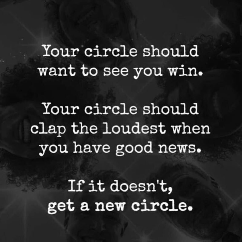 Your circle should want to see you win. Your circle should clap the loudest when you have good news. If it doesn’t, get a new circle.